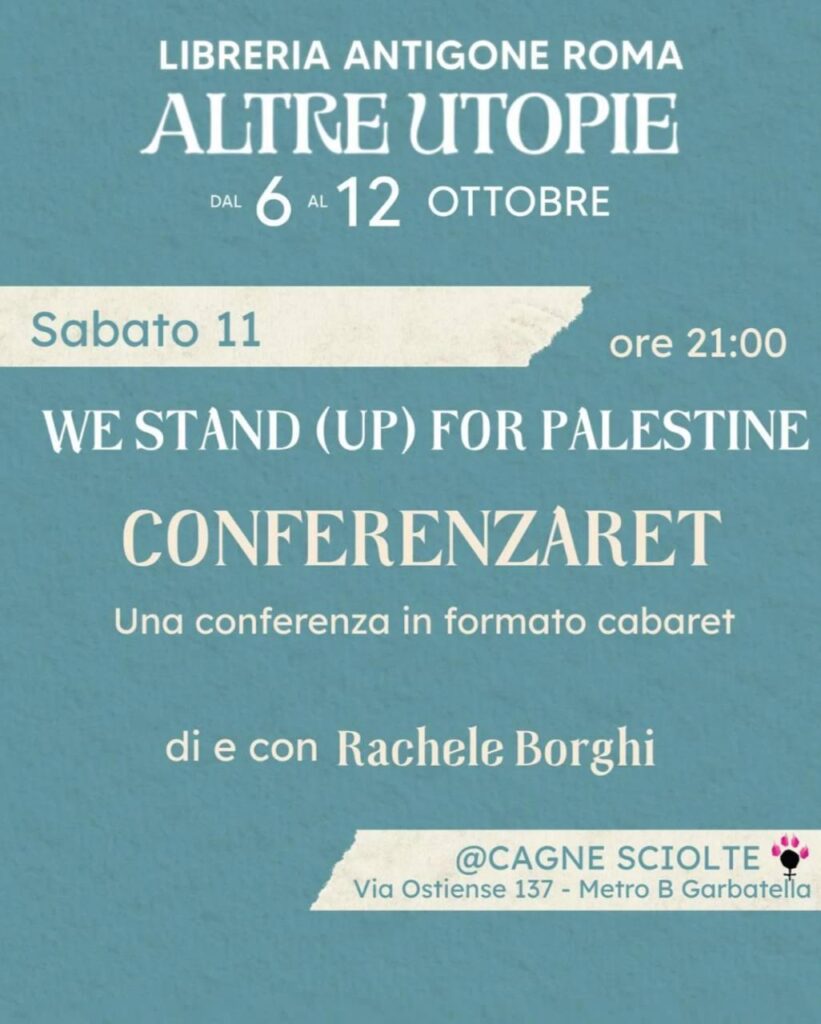 Conferenzaret é un’introduzione performativa/artistica e militante ai temi della decolonialità, del femminismo e della solidarietà con la Palestina. Tra teoria e satira, tra archivio e azione, Rachele Borghi ci guida attraverso un racconto collettivo che smaschera le complicità occidentali nel genocidio in Palestina e dà voce alle pratiche di resistenza globale.