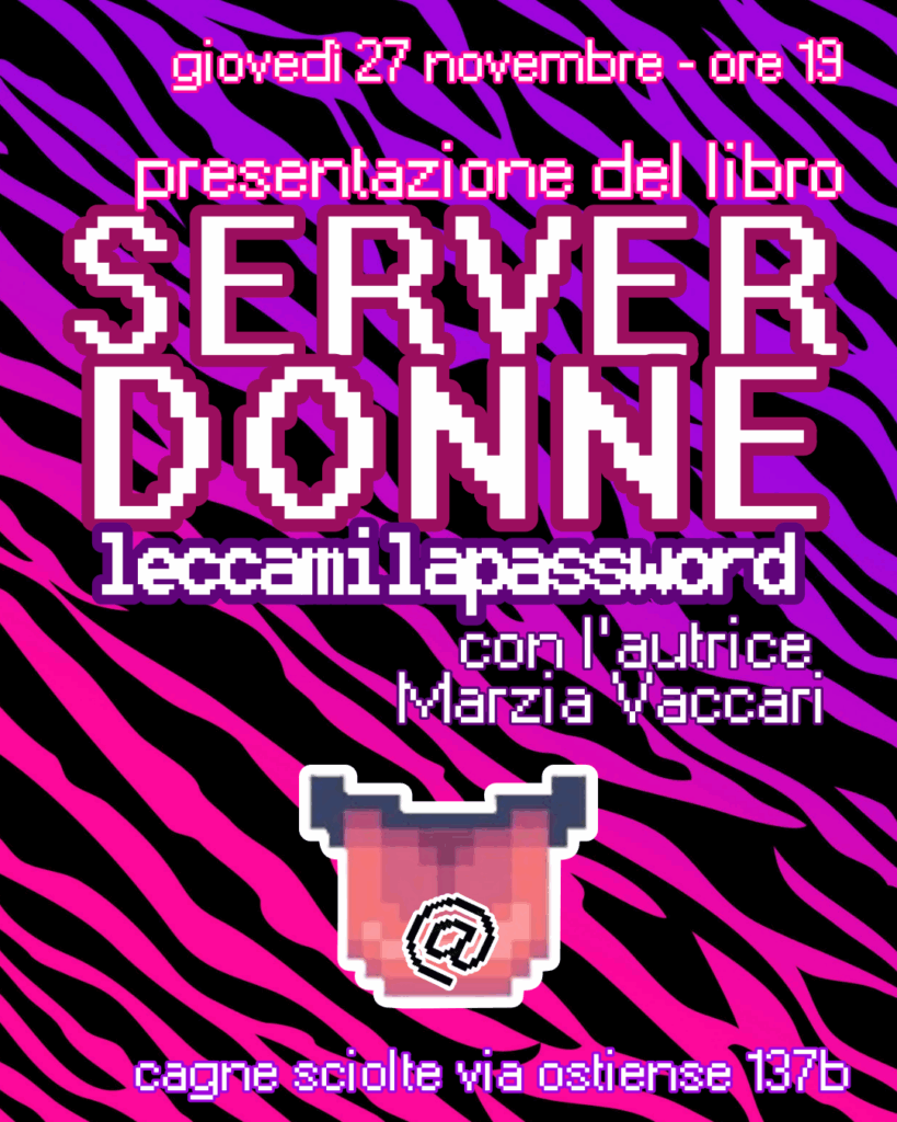 Vi aspettiamo GIOVEDÌ 27 NOVEMBRE ORE 19:00 per una chiacchiera a partire dal libro Server Donne. Leccami la password (Agenzia X, 2025) con l’autrice Marzia Vaccari 👾